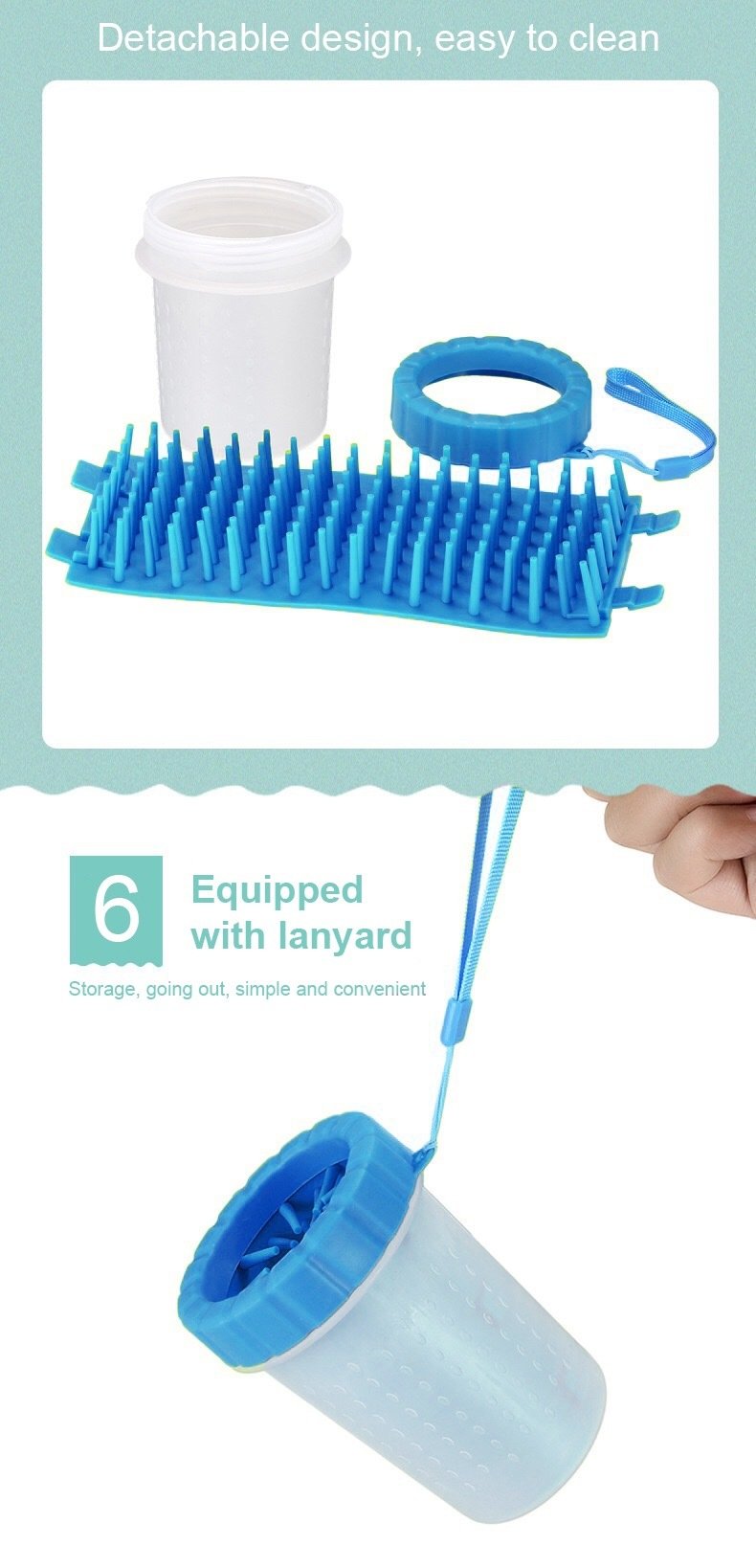 Mud-e-Mutt Paw Cleaner is lightweight, compact, and portable. Even has a lanyard to carry it along with you on walks and other doggy adventures.